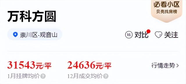 • 万科方圆最近一笔成交发生在去年12月,建面约128㎡高楼层,成交价约2.46万/㎡,对比首开价跌幅约23%。