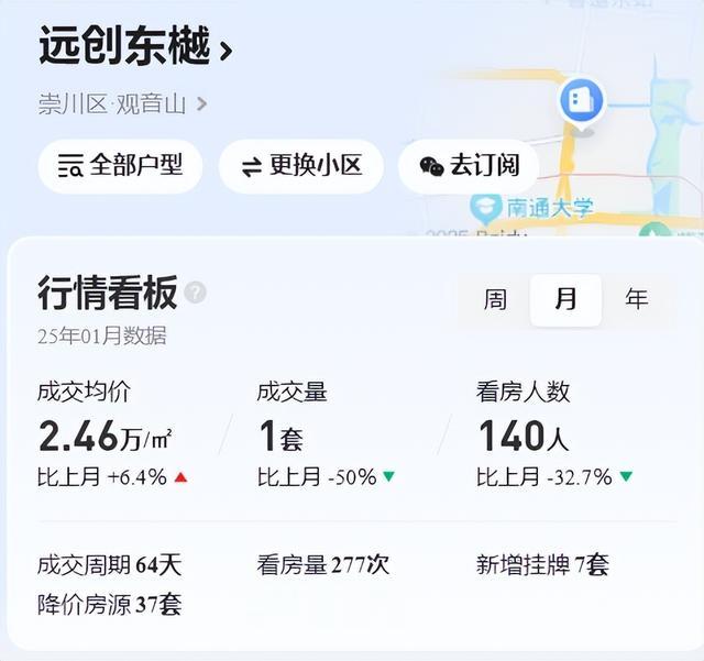 • 远创东樾1月新成交了1套建面约154㎡中楼层,成交价约2.46万/㎡,环比上月涨6.4%,对比首开价跌幅约7%,同样显示出较强的抗跌性。