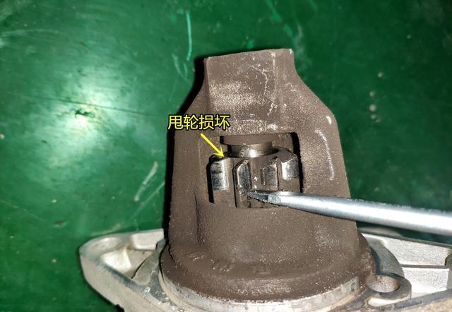 由于起动机与发动机启动齿圈进行接触,所以一旦启动机的甩轮磨损,将导致启动尺寸的齿轮严重磨损。那样我们只能更换发动机飞轮才能解决。