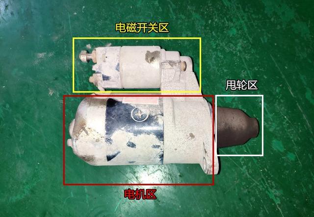1、起动机分为磁力开关、电机、甩轮三个部分。