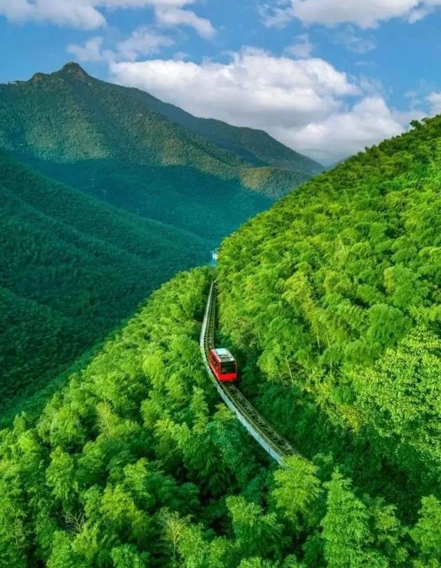 在这不光能坐着缆车俯瞰竹海,还能登顶吴越第一峰,在熊猫馆里看熊猫,也能泛舟于静湖之上,仿佛是一幅竹林山水画。