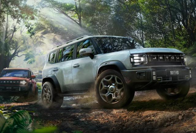 外观方正,前进气格栅配6块黑饰板与六组圆角矩形LED灯,含JETOUR标识,显硬派。尺寸:4785/2006/1880(1915)mm,轴距2800mm。车内配全液晶仪表、15.6寸中控屏及高通8155芯片,功能丰富。