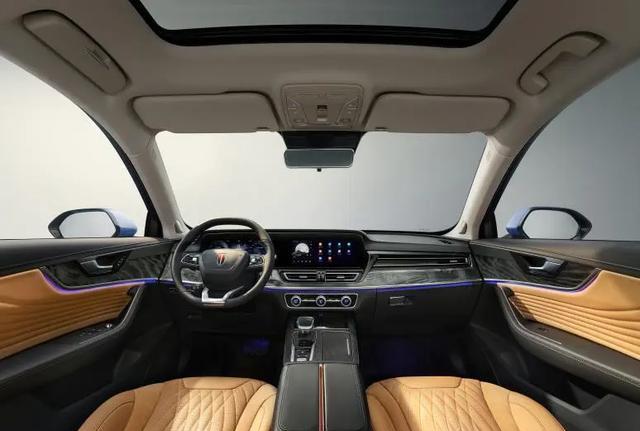 外观设前脸梯形大尺寸进气格栅,配粗壮镀铬饰条,彰显力量。尺寸:长5190mm、宽1905mm、高1835mm,轴距3140mm。车内软皮包裹,舒适度高,配悬浮液晶仪表及12.3英寸中控屏,含互联、车联网等功能,保留实体键增实用。