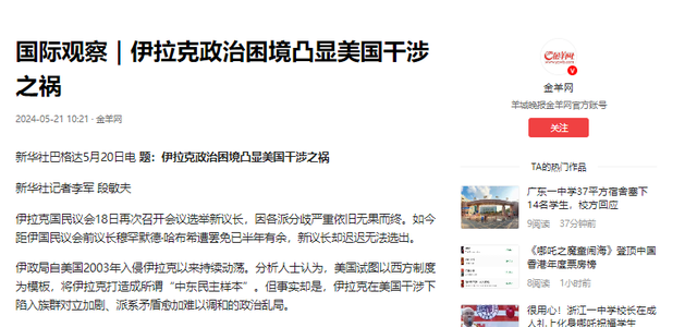 信源:国际观察|伊拉克政治困境凸显美国干涉之祸2024-05-21金羊网
