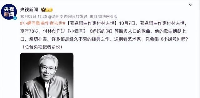 人总有一死,或轻于鸿毛或重于泰山,付林老师一生都在为中国音乐发展而努力。