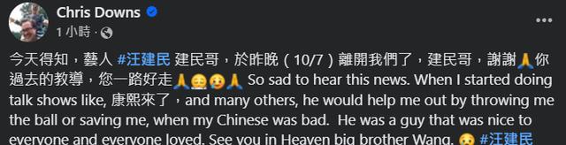 相对于那些年纪稍大的演员或名人离世,汪建民如今才不过56岁。
