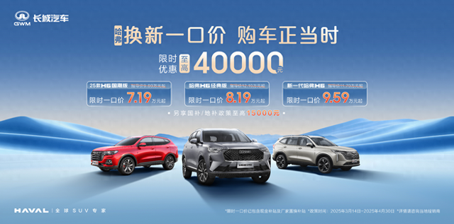 而纵观汽车市场,有着“国民神车”美誉的哈弗H6无疑是“质价比”的代名词。这款车不仅拥有卓越的品质保障,还不乏超值的惠民价格。就在日前,哈弗品牌推出了“哈弗全系换新一口价”政策,限时优惠至高40000元,还可额外享受国补/地补。其中,哈弗H6换新一口价7.19万起,助力广大消费者以更透明的价格,更轻松的购车体验,轻松享受到“国民神车”带来的卓越安全和品质保障。