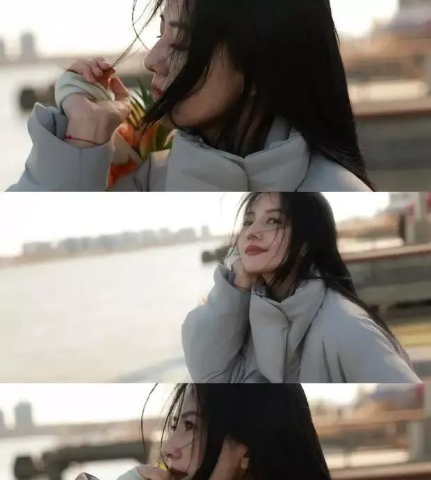 她漫步在河边的小路上,风轻轻吹过,她的头发随着微风飘动,看起来自由又随性。