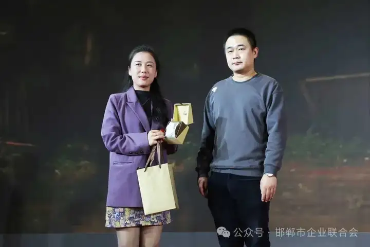 2024年轮值会长(或代表)与2025年轮值会长(或代表)进行交接。2024年轮值会长为邯郸市龙腾房地产开发有限公司董事长杨自新、邯郸市裕泰化工集团总经理李怀平、中交建京津冀总部邯郸经营分中心负责人房会超;2025年轮值会长为河北硅谷化工有限公司董事长宋福如、邯郸市瓦德新型建材有限公司董事长谢富强、邯郸泓言慧盛健康管理有限公司董事长刘泓言。颁奖表彰——————
