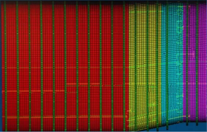 以下是一个有关潜艇舱段有限元分析及优化的案例分享。在这个案例中,假设潜艇的耐压船体采用921A钢材制造,其弹性模量为1.96e5兆帕(MPa),泊松比为0.3。考虑到潜艇钢板存在43种不同的厚度,因此需要创建43种不同属性,并将其分配给43个部件。