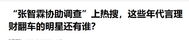 新民周刊:《“张智霖协助调查”上热搜,这些年代言理财翻车的明星还有谁?》发布时间:2023.9.22