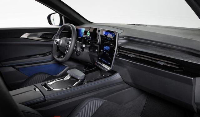 而尾箱盖末端有着翘起的鸭尾与车顶上的版型双尾设计,后保险杠部分则产生的大面积黑色装饰与车头的风格形成对应。在车身尺寸方面,新车长度达到4.71m,宽度为1.86m,高度为1.61m,轴距为2.74m,其实除了明显更高一些之外,其他与标致408X车型也基本一致。而在内饰部分,新车延续了Austral的设计理念,一横一竖两块大屏镶嵌在一起,呈悬浮式结构,有着不错的科技感,而贯穿式的空调风口装饰,随处可见的翻毛皮细节覆盖,招牌的双平底方向盘和扶手箱前端区域的手托等元素都没有缺席。