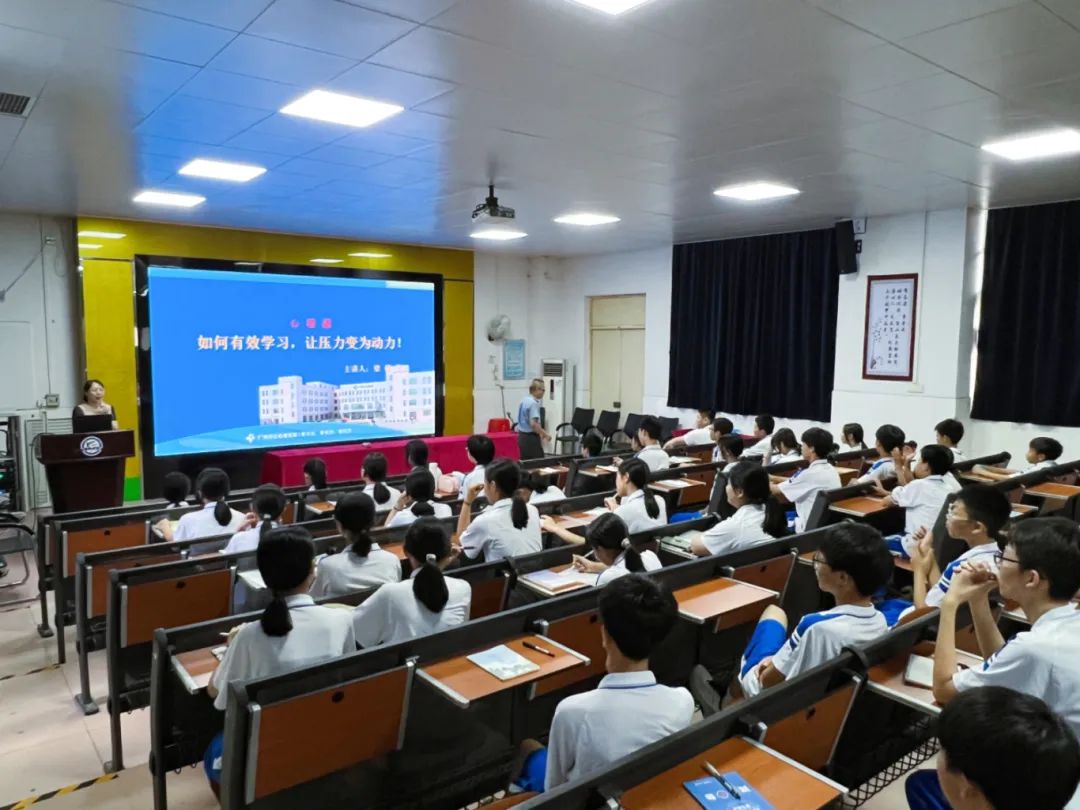为有效缓解同学们的学习压力,引导学生以积极阳光的心态缓解学习压力,帮助学生更有效地学习,促进学生健康成长,6月26日下午,受广州空港实验中学邀请,人和镇社会心理服务站、白云区心灵关爱志愿服务队联合广州白云心理医院为该校初一学生开展了“如何有效学习,让压力变为动力”主题讲座。讲座由广州白云心理医院心理咨询师梁穗莹主讲。