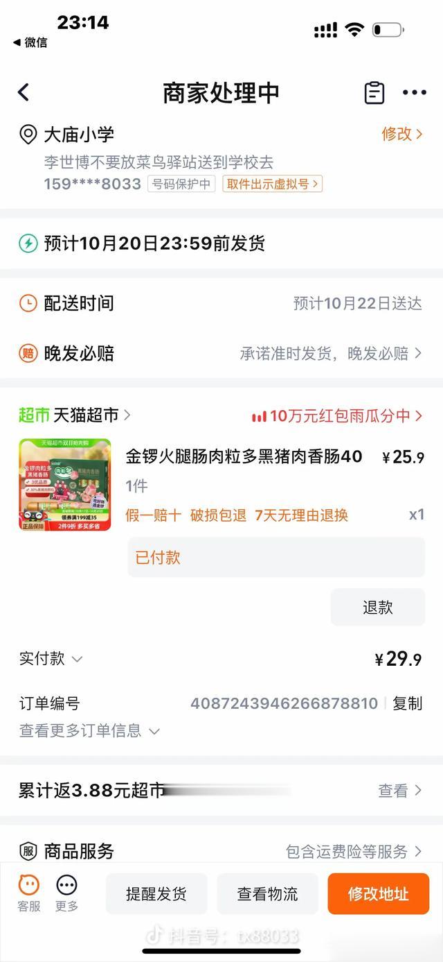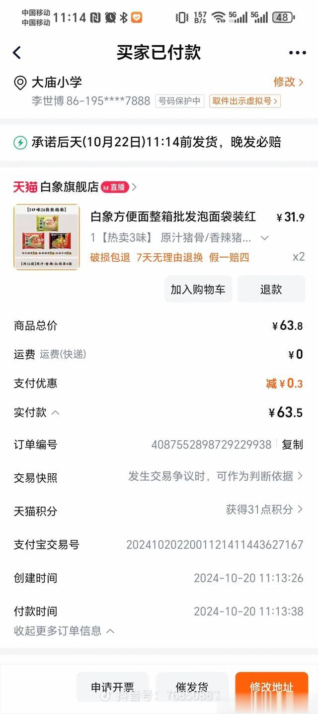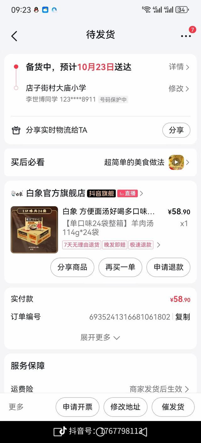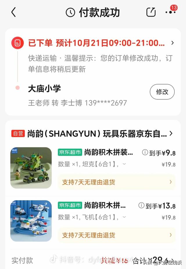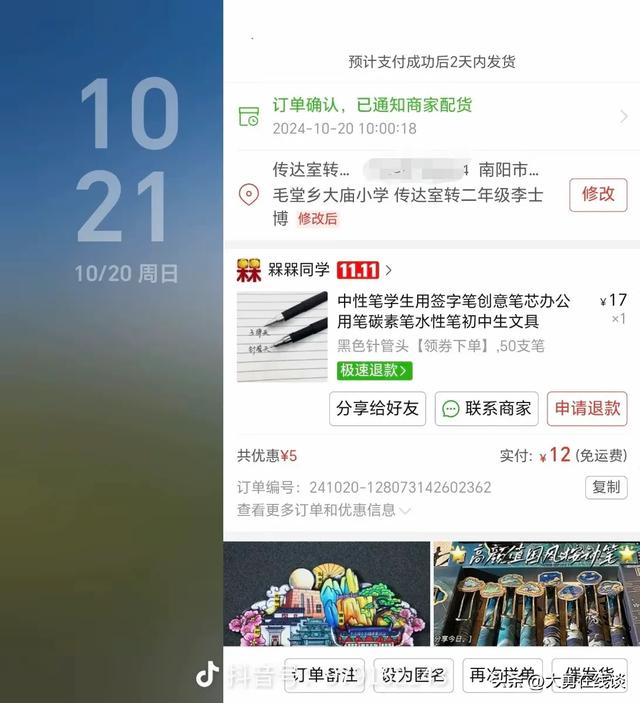 地址只精确到学校,所以大家拜托送到学校之后喊老师帮忙送到家。