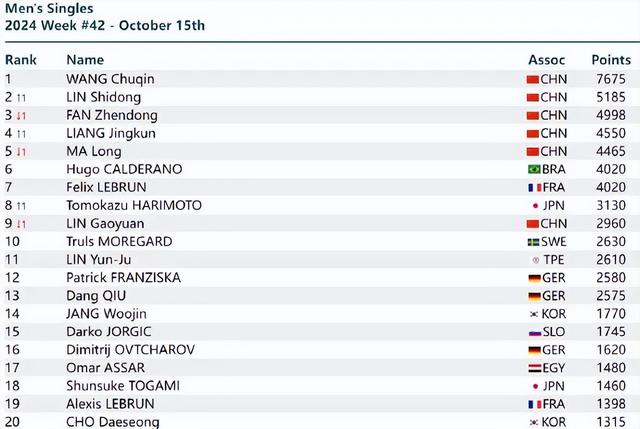 亚锦赛也让多名选手排名提升,日本选手张本智和获男单冠军,回升至世界第八。