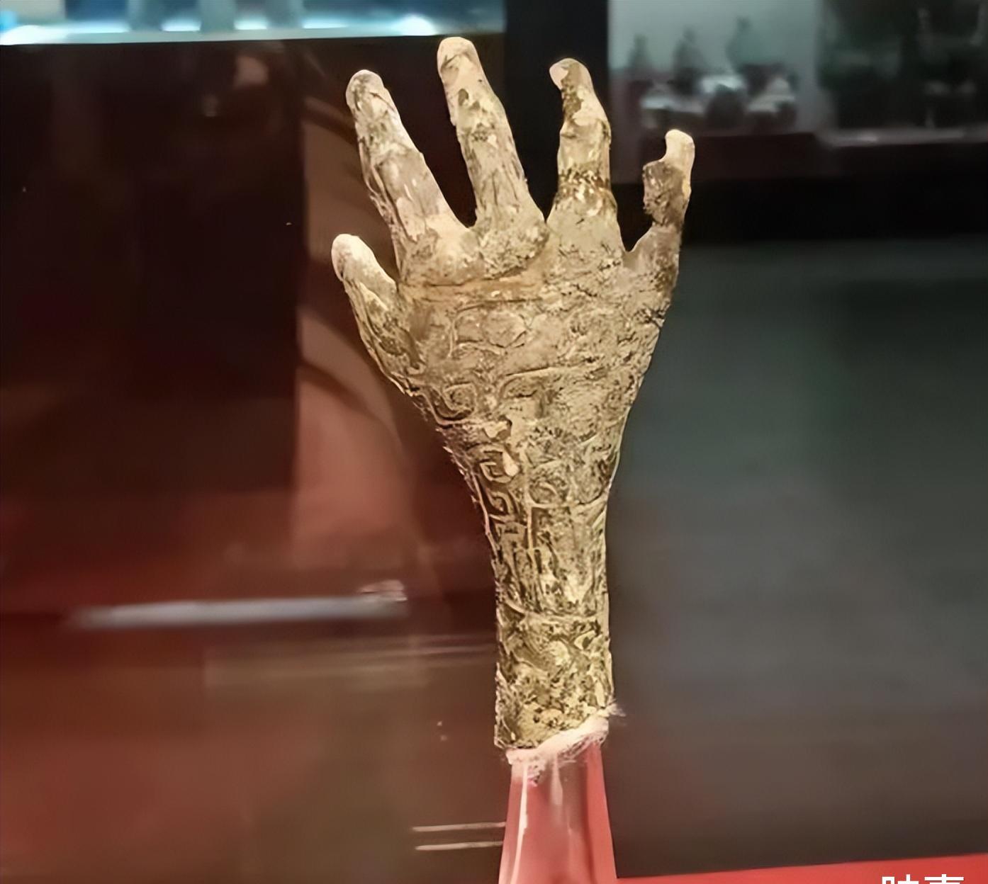 在这位将军的骸骨上,我们可以看到他已经缺失了右手的骨骼,而在右侧小臂下方的位置,竟有一只篆刻着精美纹样的空心铜制假手。如果充分地展开想象,我们基本上可以断定,铸造这只假手是为了令不幸为国牺牲的将军死后可保留一个完整的身体所用。