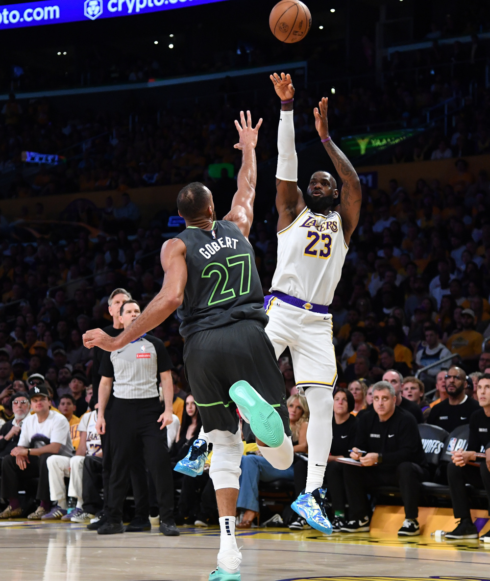 首次为湖人队出战季后赛的东契奇首节便轰下16分,带领球队领先森林狼队7分。然而从第二节比赛开始,比赛形势风云突变,森林狼队连续掀起进攻高潮单节轰出38-20,湖人队上半场结束落后11分。第三节比赛开始后,湖人队连续被森林狼队打出11-0和9-0,分差很快来到20分以上。随后湖人队试图追分,但是始终无法真正威胁到森林狼队,最终湖人队主场吃到败仗。