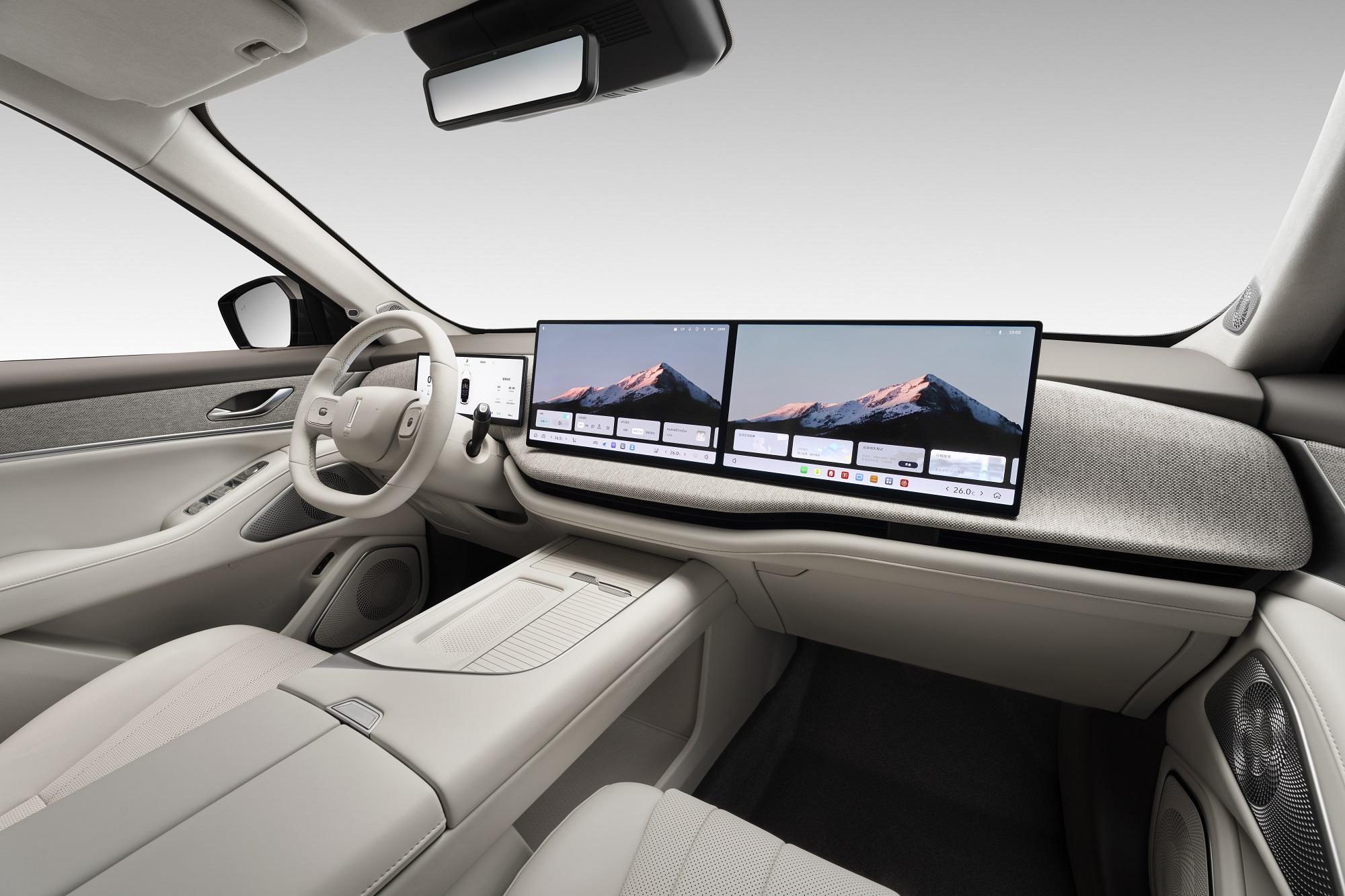 在内饰部分,全新蓝山升级明显,首先设计风格上采用了北欧风格简约浅色搭配,内饰氛围素雅,同时交互上搭载了15.6英寸2.5K超高清中控双联屏,以及17.3寸3K超高清后排娱乐屏。“大彩电”的上车搭载让蓝山的实力这一次跟上了理想的节奏。在软硬件的配置上,新车配备Coffee OS 3系统,车机配备高通骁龙8295芯片,语音控制系统配备6音区语音识别。