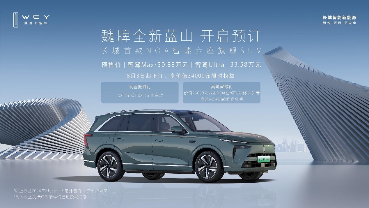 魏牌作为长城旗下高端豪华品牌,在智能化和新能源领域进步斐然。8月2日,魏牌旗下全新蓝山正式开启预售,新车本次全面升级了内饰和智驾系统,新车智驾Max 版预售价30.88万元,智驾Ultra版预售价 33.58万元。同时新车还推出了2000元抵10000元购车款、价值26000元城市NOA智驾功能终身免费、高速NOA功能终身免费等礼遇。
