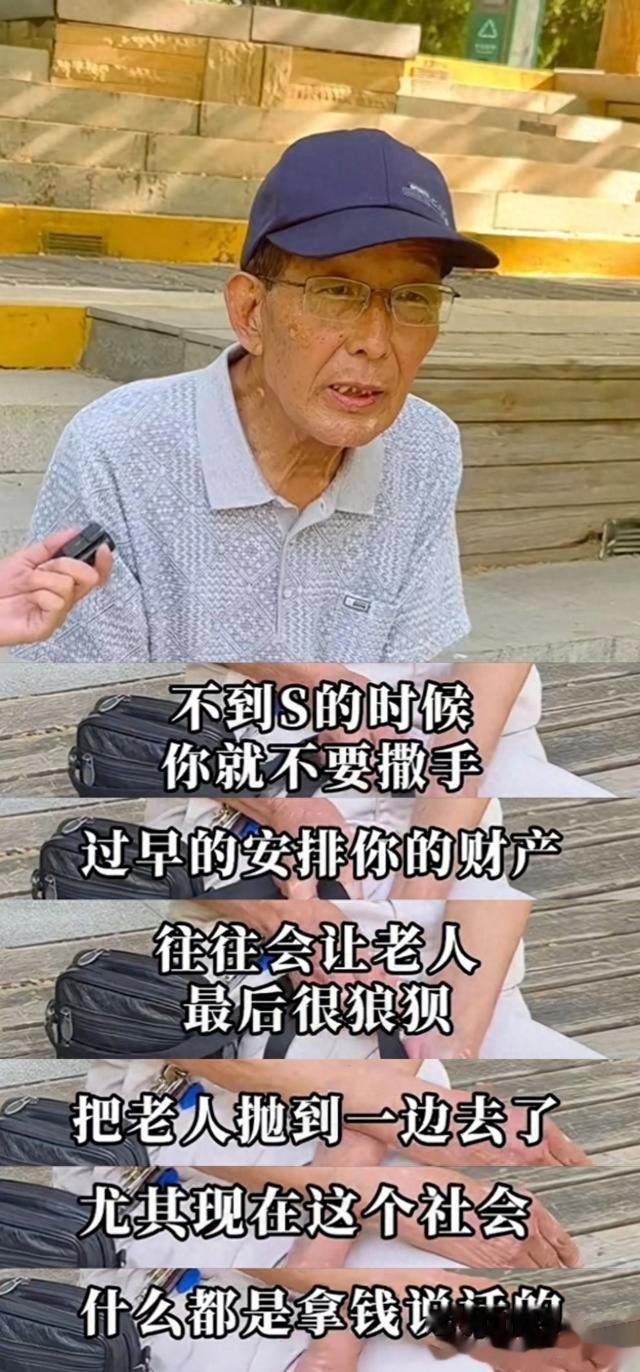 “不到死的时候,你就不要撒手。过早地安排你的财产,往往会让老人最后很狼狈。过早的就继承了,把老人抛到一边去了,他也很悲惨的。”