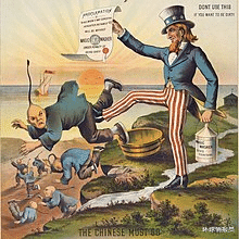 然而排华的倡议者却正利用了废除奴隶制这一点,在排华问题上大做文章。他们声称中国劳工在美国的待遇非常糟糕,这与奴隶制无异。既然美国已经废除了奴隶制度,那剥削中国劳工的做法也是不妥当。这样的措辞乍一听是在为华人说话,但实际上这只是为排华埋下伏笔。
