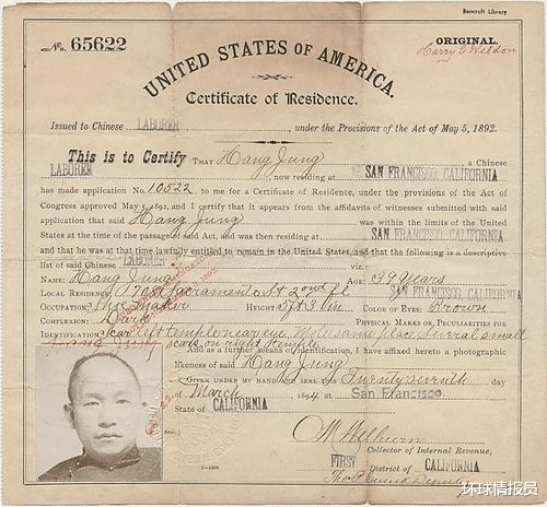 然而对华人的压迫不仅仅止于1882的《排华法案》。在1892年,美国人更是要求所有在美华人额外办理一张居民登记纸,不按此做的人将被驱逐出境。作为唯一被要求登记的族裔,这完全使在美华人的地位低人一等。同时,华人在法庭上也不能拥有证人以及获得保释。
