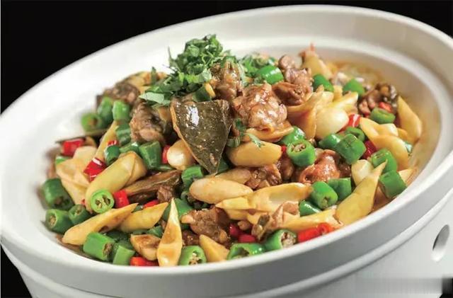 原料:春笋、鲍鱼、大蒜、五花肉调料:食用油、料酒、老抽、生抽、糖制作:1.春笋切滚刀块,焯水备用;2.锅中下油,加入大蒜头煸香,加入切好的五花肉(小块)煸出油脂,放入出过水的春笋,加入一茶匙猪油、少许料酒、老抽、生抽和糖,少许水煮沸,小火加盖焖10分钟;3.加入治净的鲍鱼,小火焖5分钟,大火收汁,出锅即可。椒麻春笋