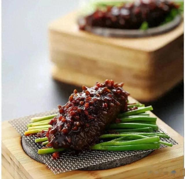 原料: 水发辽参6根、猪梅肉粒150克、自制的腌菜粒150克、葱10克、蒜米10克、鲜泰椒粒5克 调料:基础爆炒汁30克(鸡粉40克、醇香一品汤10克、家乐鲜露5克、珍味海真酱15克 盐5克、白糖5克、白酱油15克、水250克)、火辣干锅酱50克、橄榄油40克制作:1.将辽参用汤底浸泡入味后用热油略炸;2.将锅烧热,入橄榄油爆香猪梅肉粒、腌菜粒和小料;3.将主料和调味料一同炒匀,调好口味后,起锅即可上席食用。