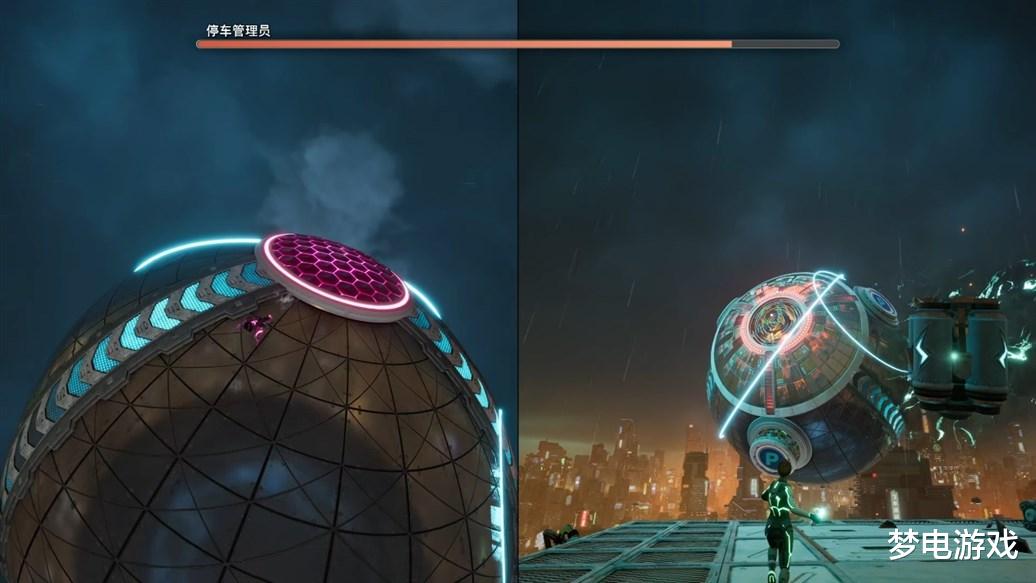 比如前期boss“停车场管理员”,你们需要先在平台上躲过它几波攻击,就像避障游戏一样。