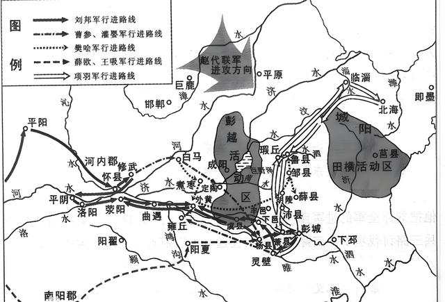 当时,沛公刘邦与项羽正在陈留(今河南开封东南),听说项梁兵败身死,立即和吕臣一同率兵西撤,吕臣军驻扎在彭城(今江苏徐州)东,项羽军驻扎在彭城西,沛公刘邦军驻扎在砀。