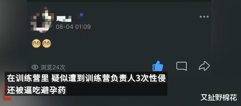 据报道,一名花季少女在报名参加当地知名训练营后,竟遭遇了训练营负责人王某的三次性侵,甚至被逼服用避孕药。在绝望中,她也想过找人帮忙,可还是没能逃出那个人的魔掌。最后,家里人还是通过女孩和其他人聊天,无意中知道了这个事情的真相才选择报了警,然后这桩让人觉得气愤的事情才被大家知道。