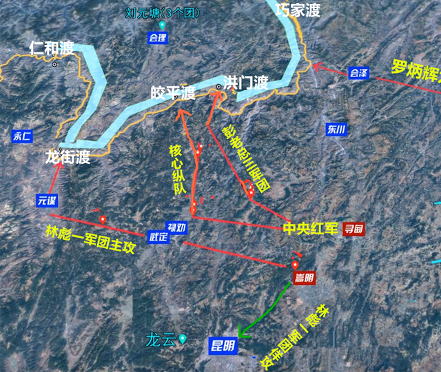 而龙云把他的直属部队主力放在乐在,有三个目的:阻止红军从乐在过河;给老蒋做做样子;最关键的还是阻止红军走乐在奔袭昆明。