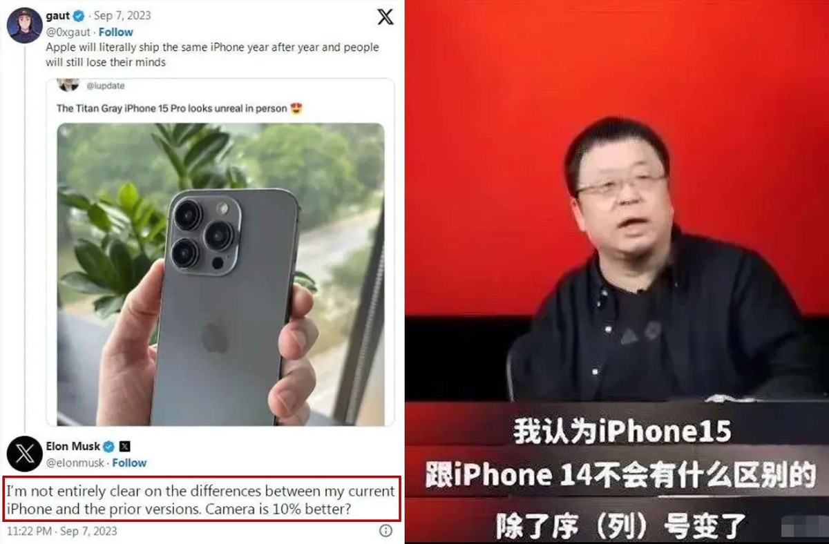 因此,即便连马斯克、罗永浩都吐槽iPhone 15和iPhone14几乎没有区别,但也不影响果粉趋之若鹜。因为即便只有新的配色,也足以向别人暗示这是最新款的iPhone 15。
