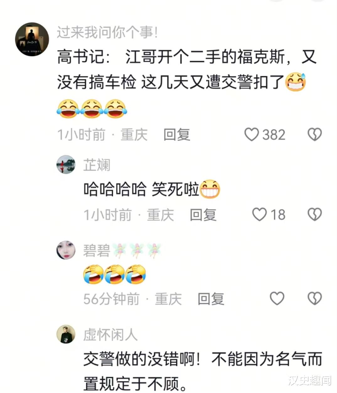 网友听到高书记说,“江哥”的二手福克斯车,因为没有年检,被交警扣押这件事,都要笑喷了。