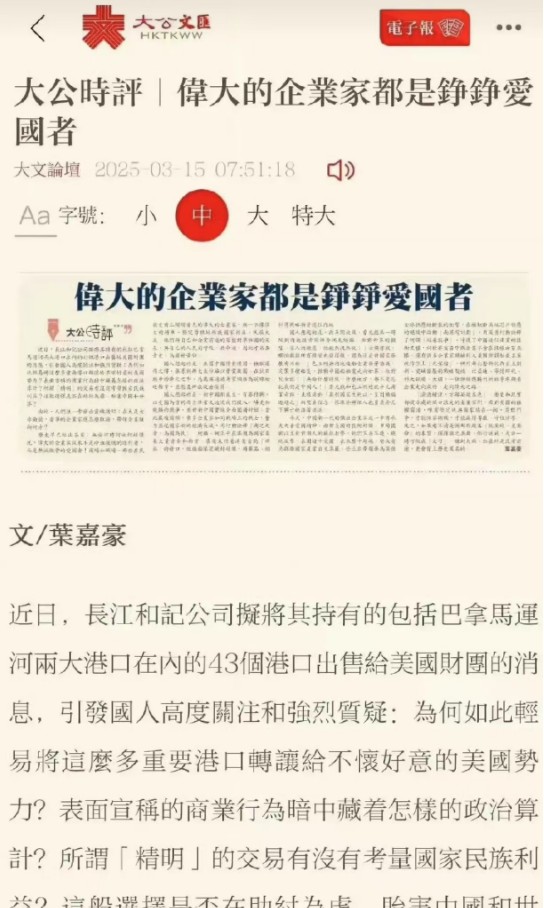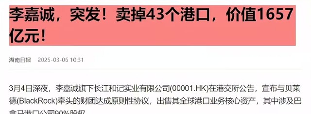 李嘉诚以228亿美元出售去抢拿球43个港口。