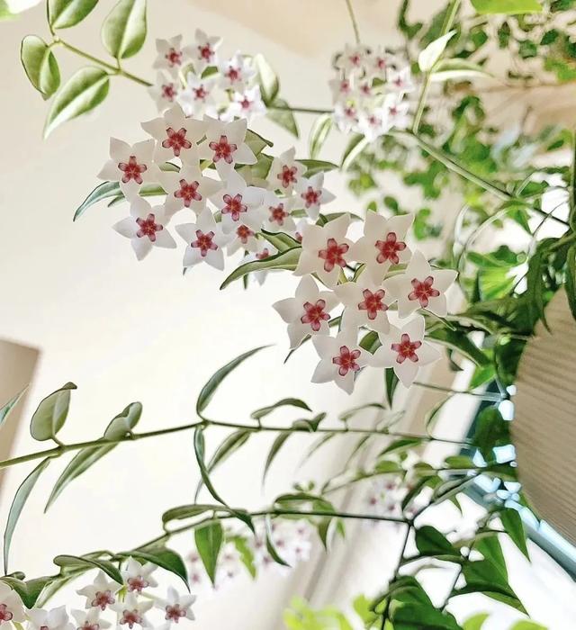 更令人称奇的是,球兰对光线的态度,它似乎天生便带着一份淡泊与从容,对光照的苛求并不严苛,反而偏爱那背阴之处的静谧与安宁。其生命力之顽强,亦体现在对干旱的微微耐受之上,土壤间,见干见湿,恰似人生之哲学,于平衡中寻找和谐共生。将一盆球兰悬挂于窗前,藤蔓便如瀑布般悠然垂落,随风轻摆,每一缕摇曳都似乎在诉说着超脱尘嚣的渴望,引领着观者的心灵,穿越喧嚣,回归到那份原始的宁静与自在之中。在这一刻,时间仿佛凝固,只留下球兰与心灵的对话,共同编织着一段关于自然、关于生命、关于宁静的悠美诗篇。