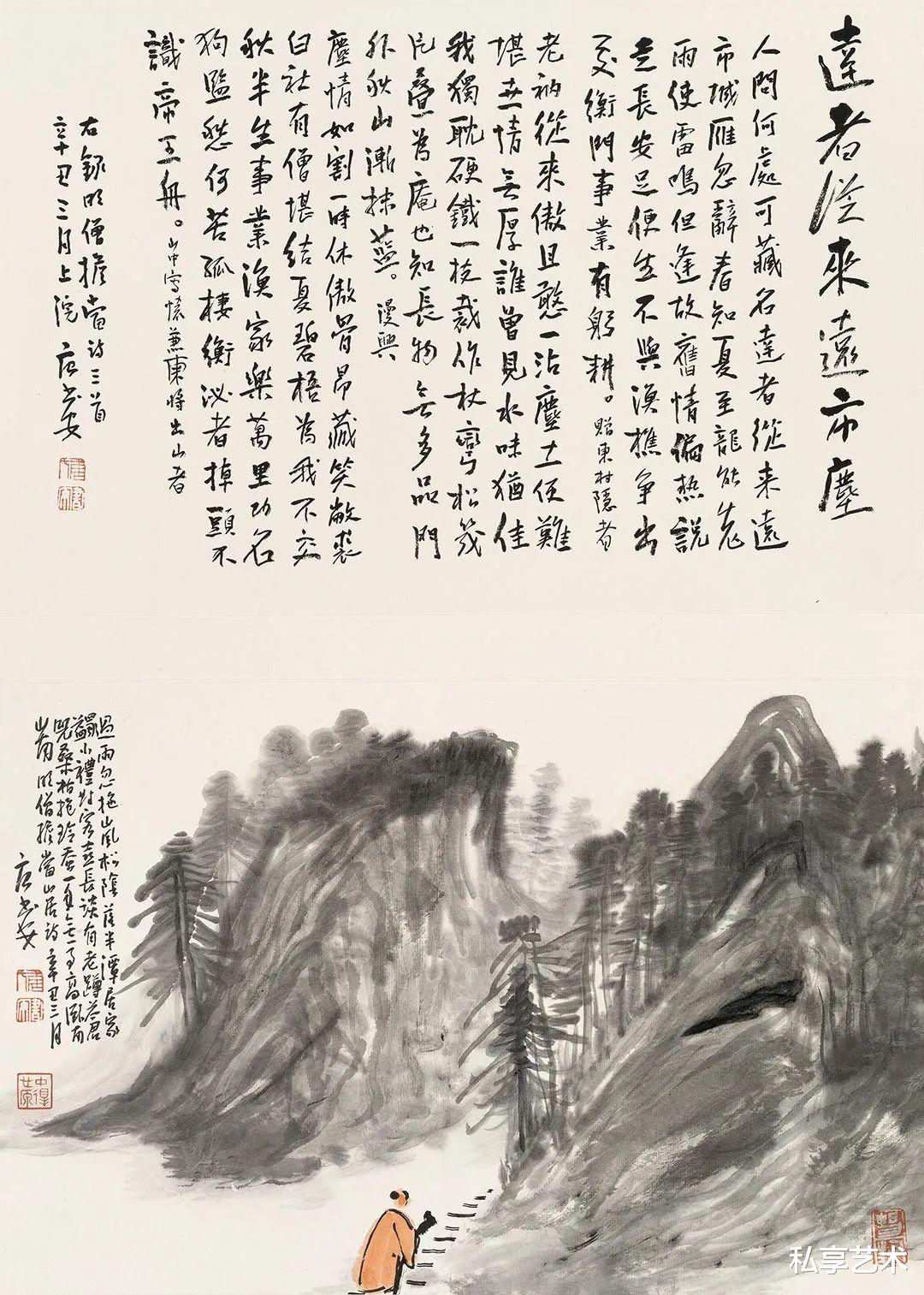 其一:不重色彩。但凡称得上文人画的,基本上都是是水墨为主,因为在他们眼里:色、欲不重要。即或是有色彩,也多是淡雅的紧。比如元人赵伯驹、赵孟頫等人画的青绿山水,那也是将水墨画技法与趣味融在青绿山水的画法中,形成一种介于院体画(歌功颂德之作)和文人画之间的文人青绿,即小青绿山水。我目前就是在整理研究这种画法;