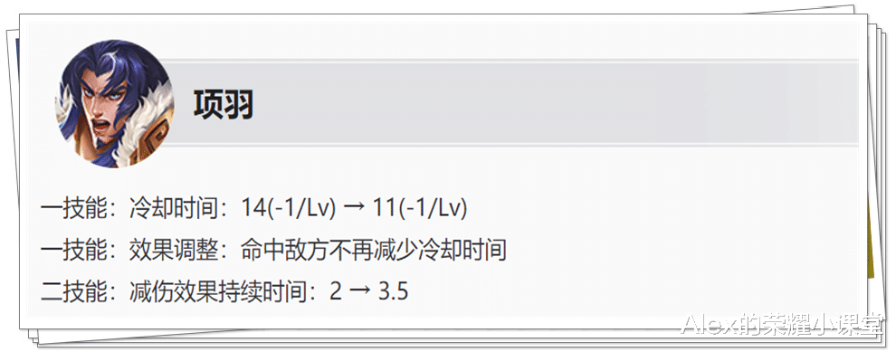 即一技能命中的情况下冷却时间和以前差不多,但是一技能空了的话,冷却时间比以前少了三秒,提升了项羽的容错率。