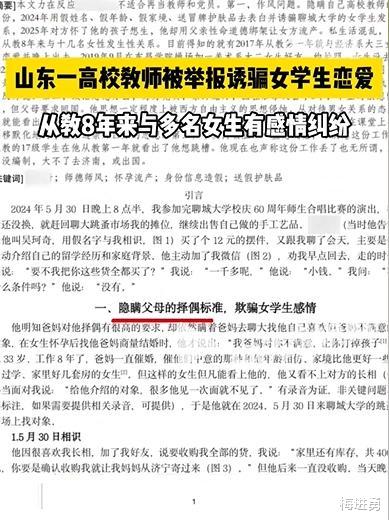 受到欺骗的女生用论文般的水准对武某某进行了公开举报,有学识有文化总是能在各个领域大显身手,虽然在甜蜜恋爱的外衣下有可能失了准头,吃一堑长一智,在发现受到欺骗后能奋起反击,扒下武某某的面具也不失为勇敢之举。虽不能窥“论文”全貌,但对武某某做的事总结得却十分精到:师德师风存在问题,导致女生怀孕流产,身份信息造假,给别人送假护肤品。