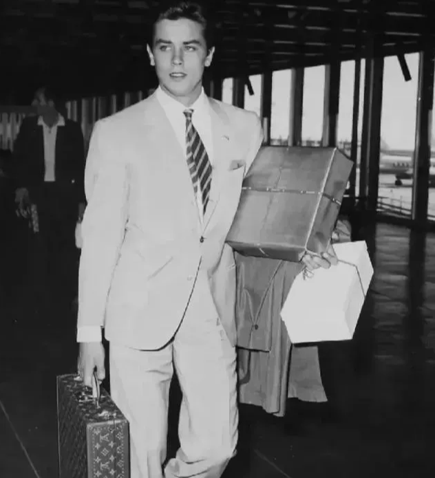 还是英俊小生时,阿兰德龙就是 Lv 的代言人。这是他出现在机场时的照片。