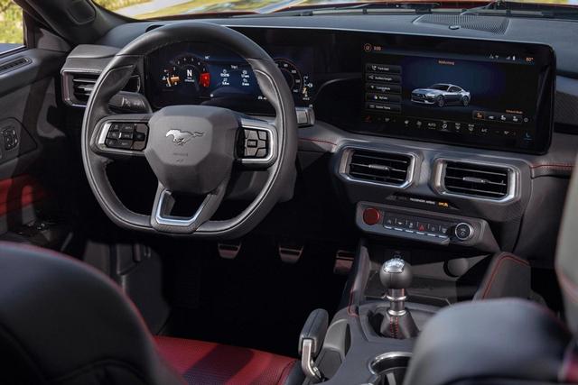 内饰方面Dark Horse车型和普通版车型的区别并不大,也使用了双联屏的设计,整体称不上特别豪华和运动,但是有大量的实体按键以及机械手刹等等,非常适合高性能车爱好者。不仅如此,Dark Horse车型还使用了具有很多功能的驾驶辅助系统,可以说这辆看起来很野蛮的传统美式肌肉车其实并没有那么野蛮,反而在很多方面都很人性化。