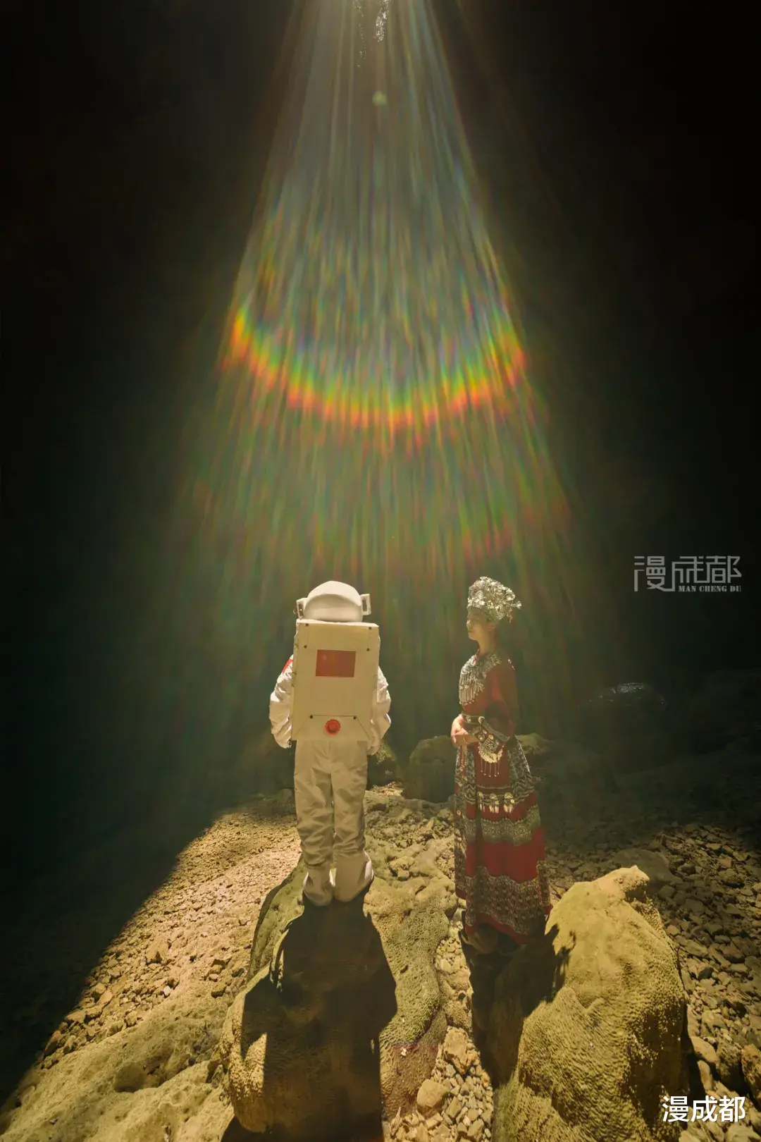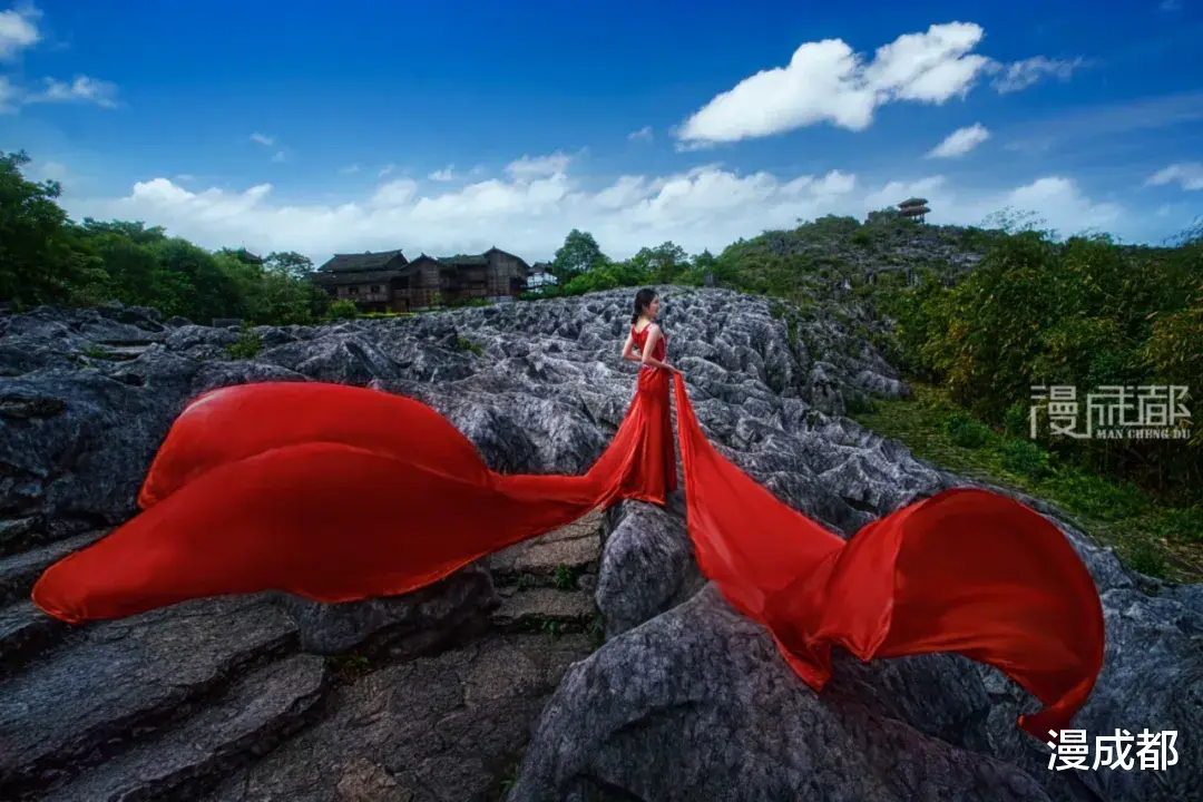 旅游时用手机或者相机拍摄下叹为观止的景点风貌,是现代人的必选动作,但是“到此一游”的打卡式拍照,在罗发兵看来,真是浪费了兴文如此强大的旅游资源与世界级奇观。来看一组罗发兵为游客拍摄的创意人像照,他擅长将兴文的自然景观与人物进行场景结合,让人物呈现在大自然巧夺天工的氛围里,令整个画面拥有了与众不同的神秘美感。
