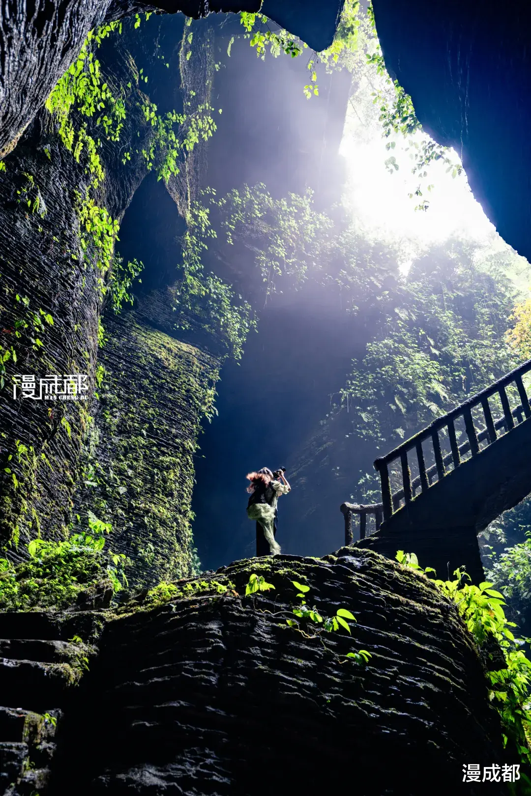 “飞雾洞”是僰王山其中一个看瀑布的景点,由两个朝天的漏斗形竖洞组成,这里空气中弥漫着清新的水雾,让人仿佛置身于阿凡达的潘多拉星球一般神奇。