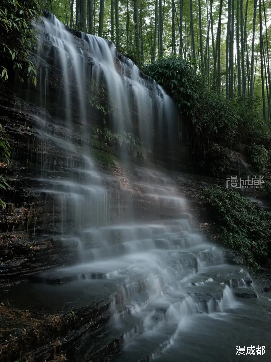 西有青城山,南有僰王山。距离石海不远的僰王山,有5条由南向北的溪流终年不断,68道瀑布千姿百态,距今约4.1亿年的“千层岩”,错落有致,形态各异,构成了一幅奇美绚丽的山水古画。