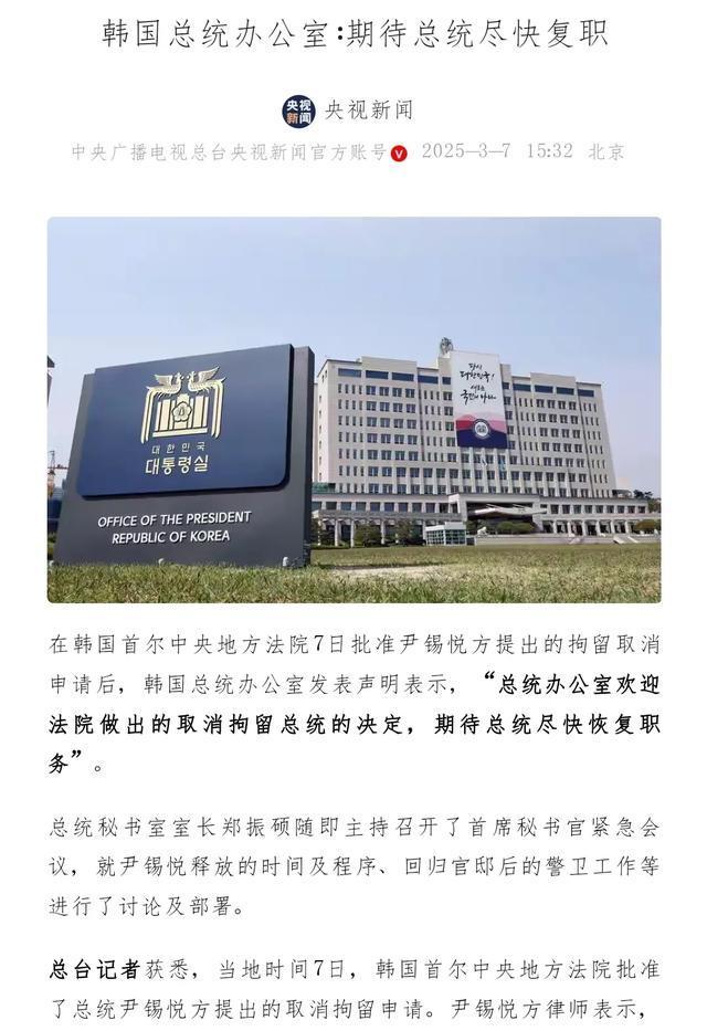 【一、韩国首尔中央地方法院3月7日宣布宣判“尹锡悦提出的拘留取消申请”获得通过】