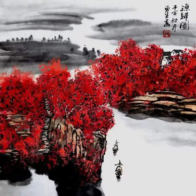 《渔归图》70X70cm