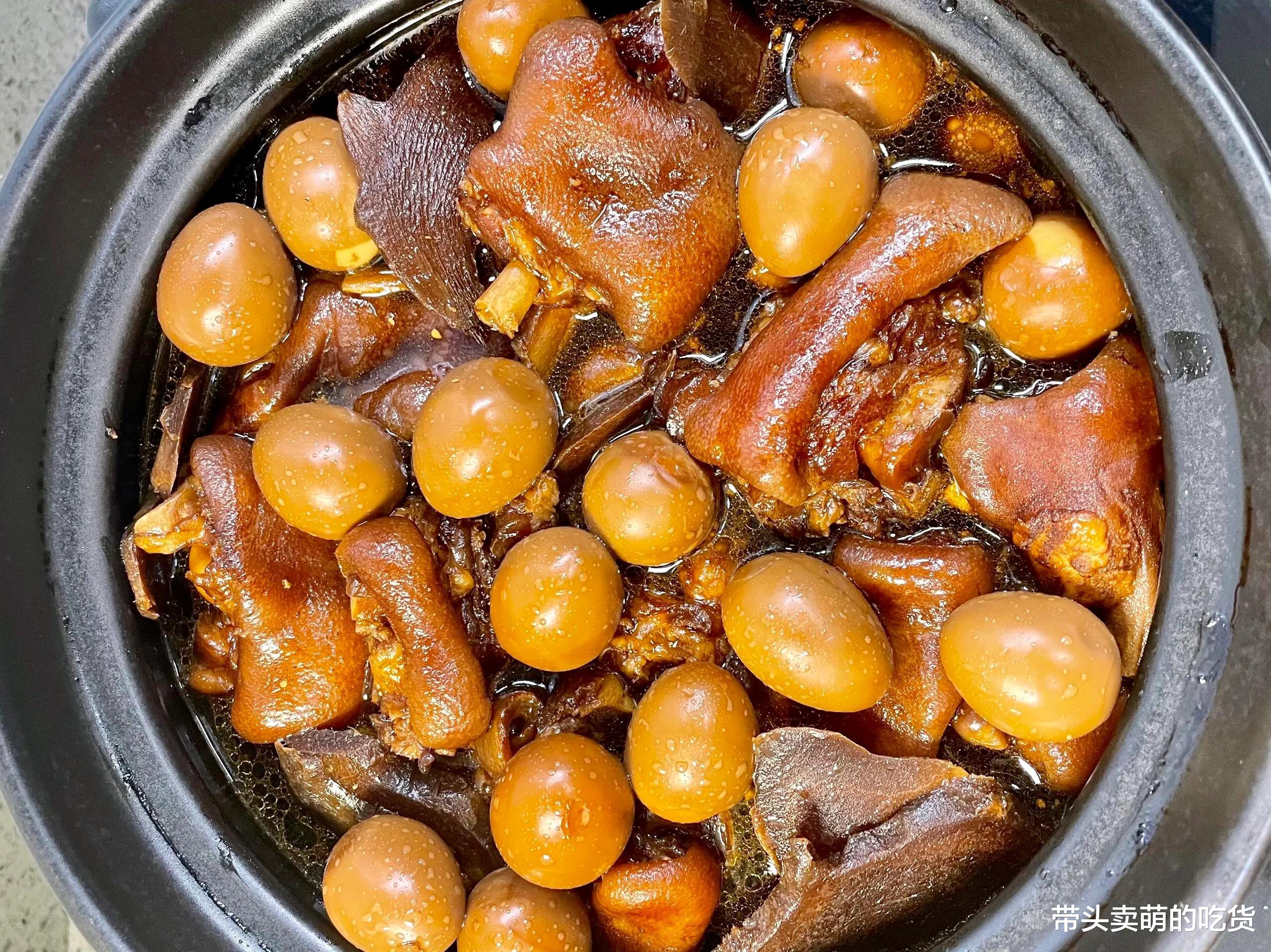 3、然后再放入提前煮好的鹌鹑蛋,继续焖煮个20分钟以上,酸甜可口的猪脚姜就算是成功了,可以等温度下来以后,冰镇冷藏一下口感更清爽。