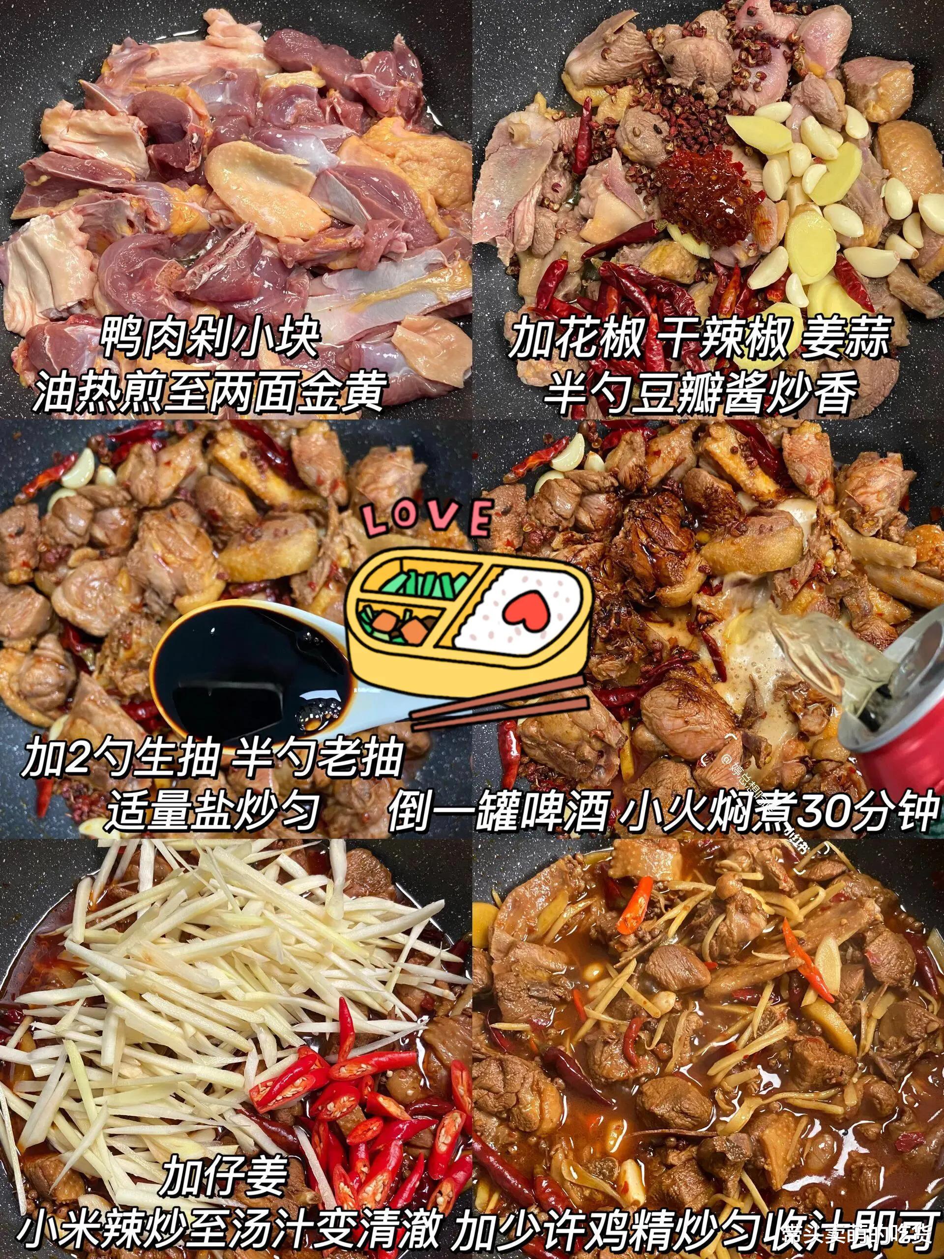 主要食材:鸭子半只,子姜丝,花椒,干辣椒,蒜末,豆瓣酱,生抽,老抽,啤酒,小米辣,冬吃萝卜夏吃姜,吃鸭肉肯定是要和姜搭配的了,每次做这道菜家里米饭就遭殃,肯定是会比平常饭量要多个三分之一的。