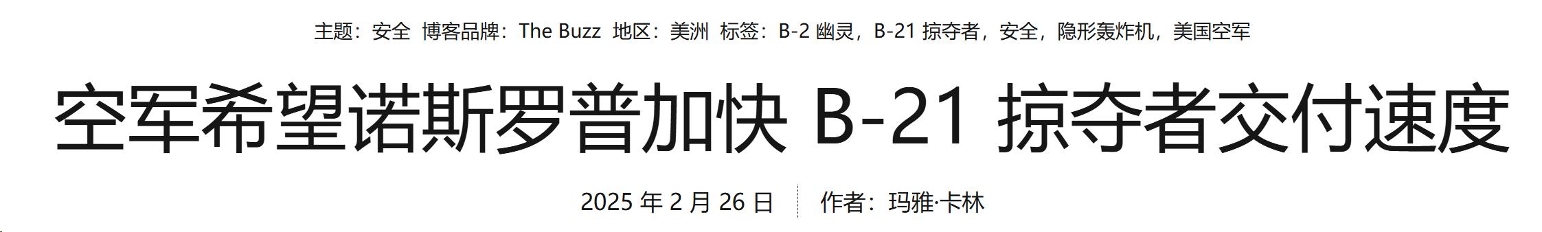 美国空军又寄希望于B-21(美国《国家利益》网站报道截图)
