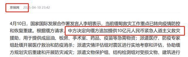 昨日,我方高层决定追加10亿元善款至缅甸,用于实施救援行动。
